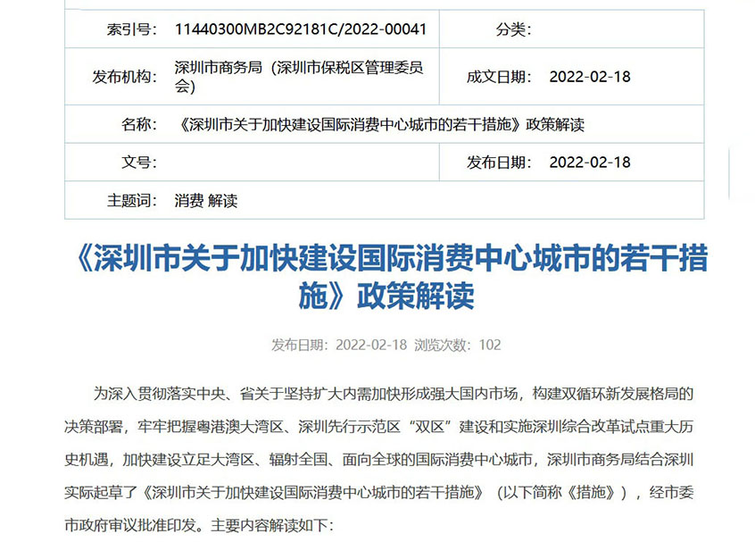 名稱:《深圳市關(guān)于加快建設(shè)國際消費(fèi)中心城市的若干措施》政策解讀