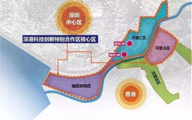 福田河套“深港科技創(chuàng)新合作區(qū)”的示意圖,它距離福田中心區(qū)直線距離不到1公里,未來將跟福田CBD融合發(fā)展