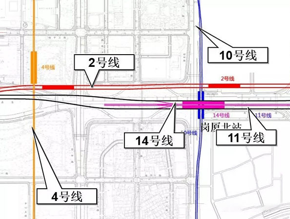 ②預(yù)計(jì)2025年,將實(shí)現(xiàn)四線(xiàn)換乘(2、10、11、14號(hào)線(xiàn))。
