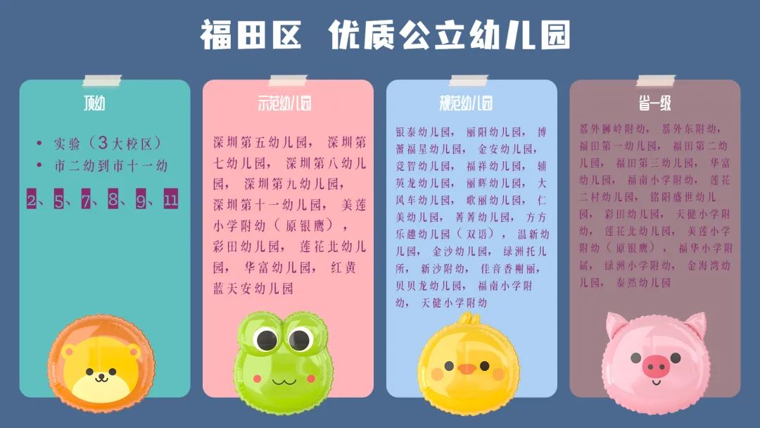 若說(shuō)起公立幼兒園,福田繼續(xù)碾壓其他區(qū)。單福田中心,就占福田八大市機(jī)關(guān)幼中的五大。福田自己還有三個(gè)區(qū)級(jí)機(jī)關(guān)幼。深圳中心?天元周邊1-4公里,多達(dá)幾十所示范、規(guī)范、省一級(jí)公立幼兒園。怎么選都可以。