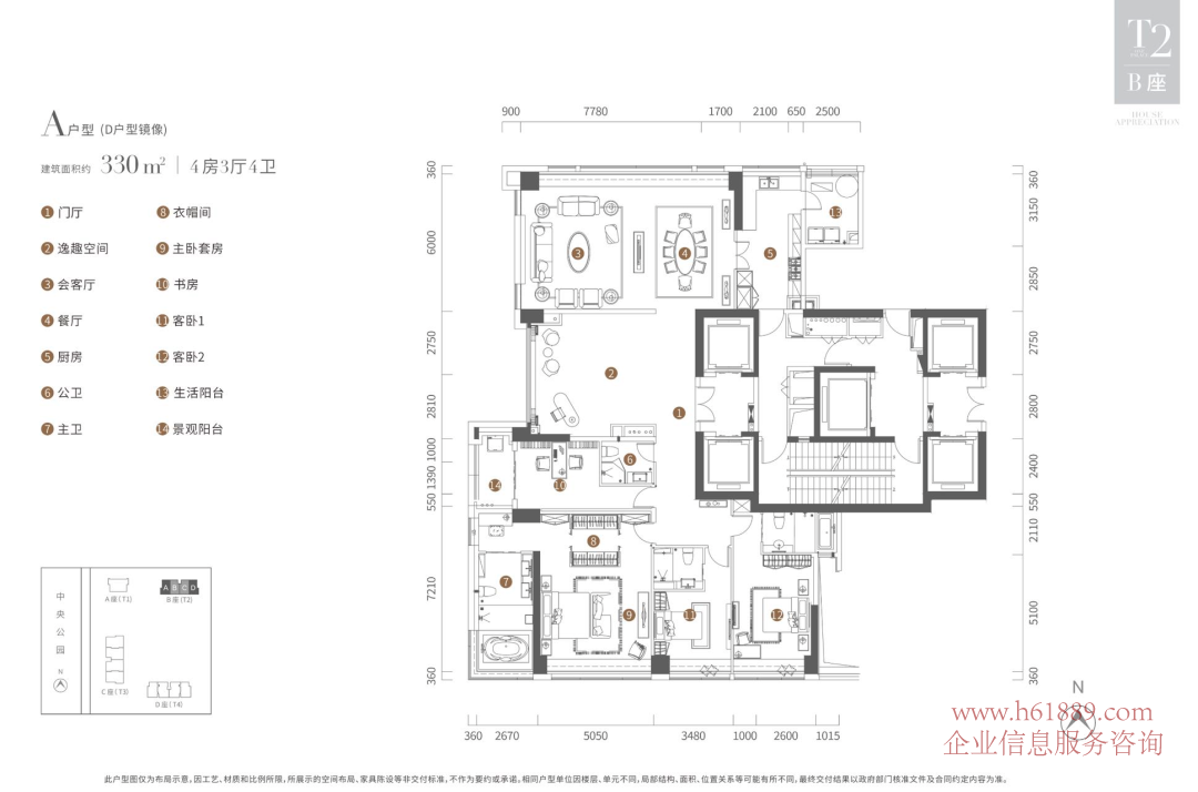 ①:330平米戶(hù)型,在B棟的東西兩翼,端頭戶(hù)型