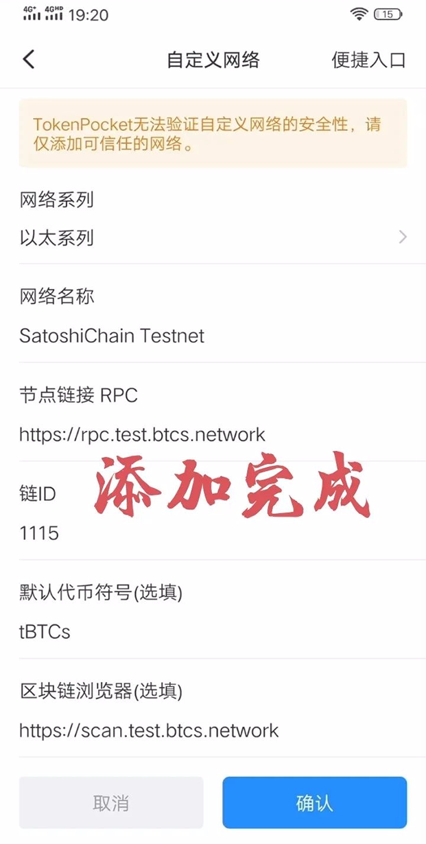 第④步:中本聰幣BTCs公鏈、TP錢包、添加網(wǎng)絡(luò)