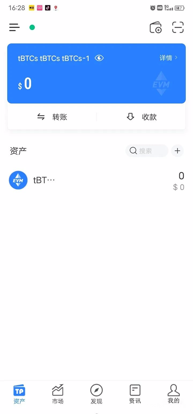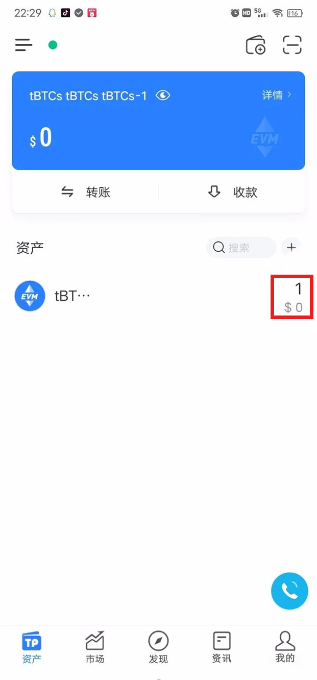 第③步:中本聰幣BTCs公鏈、TP錢包、打開TP錢包有沒有tBTCs、測試幣到賬