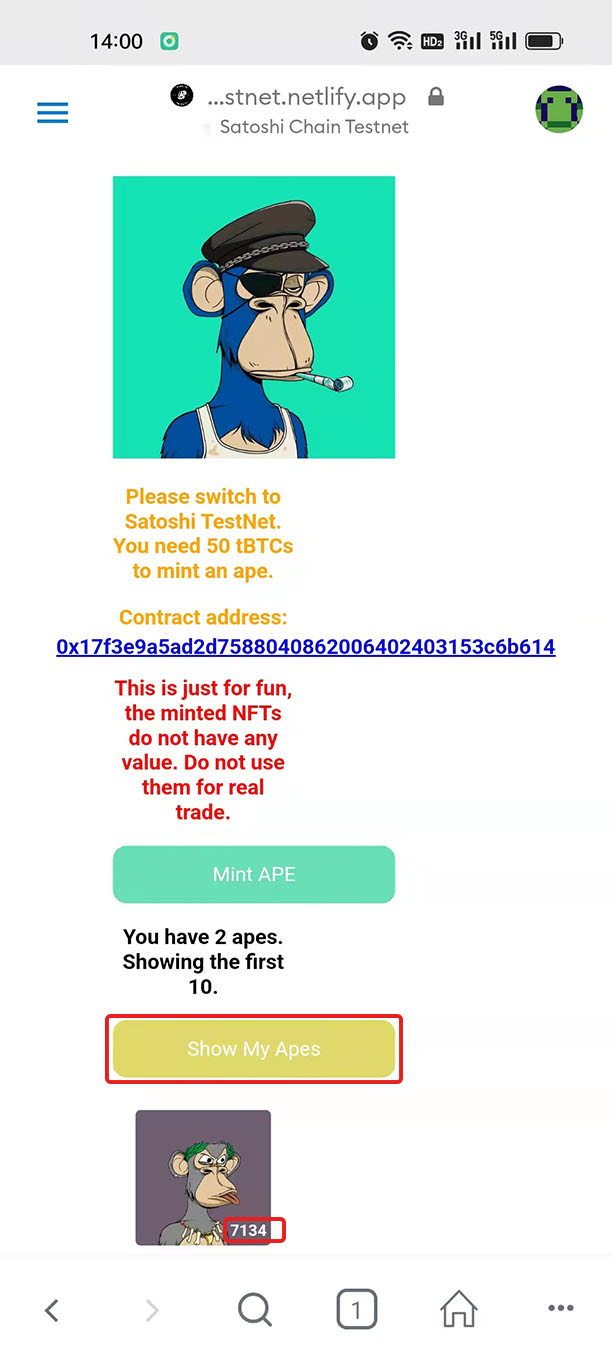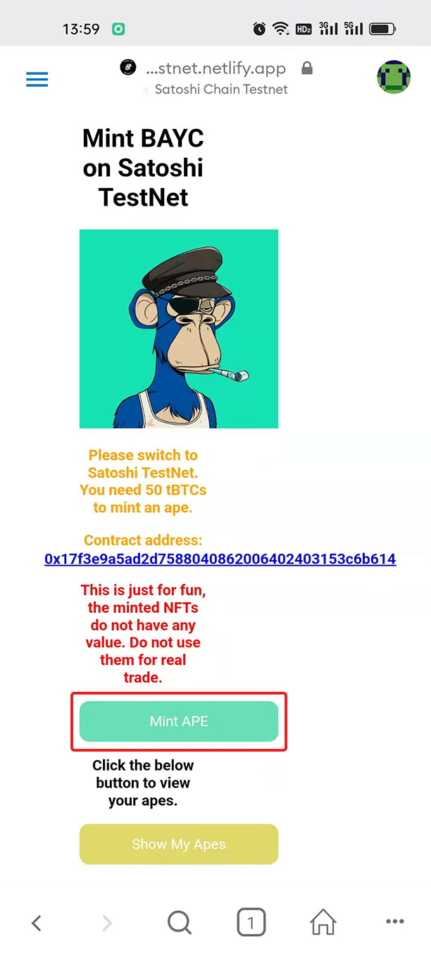 盲盒模式、每次兌換一個(gè)、需要測(cè)試幣、tBTCs、50枚兌換一次、每次一個(gè)無(wú)聊猿