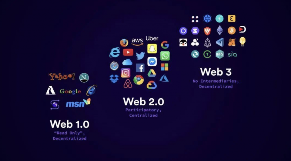 Web1.0:出現(xiàn)于20世紀(jì)90年代和21世紀(jì)初。當(dāng)時(shí)的互聯(lián)網(wǎng)是靜態(tài)、只讀的HTML頁面。用戶之間的互聯(lián)也相當(dāng)有限、Yahoo、新浪和搜狐等,內(nèi)容為主,少交互