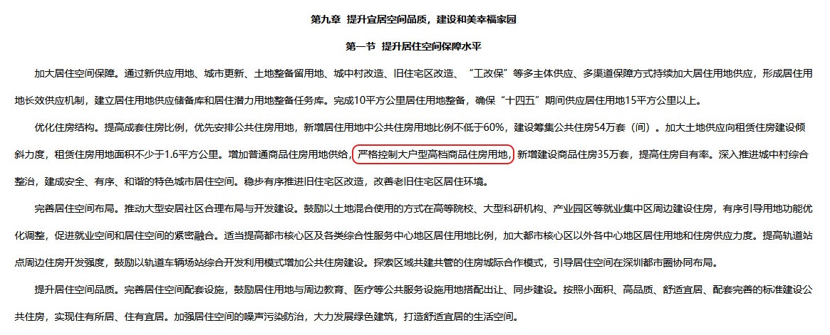 4月25日,《深圳市國(guó)土空間規(guī)劃保護(hù)與發(fā)展“十四五”規(guī)劃》(以下簡(jiǎn)稱《規(guī)劃》)正式發(fā)布?!兑?guī)劃》透露:要增加普通商品住房用地供給,嚴(yán)格控制大戶型高檔商品住房用地