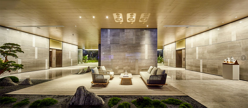 建筑外立面由國(guó)際知名設(shè)計(jì)團(tuán)隊(duì)L&O擔(dān)綱設(shè)計(jì),干掛天然石材雕琢,細(xì)節(jié)彰顯奢華氣質(zhì),恒久彌新