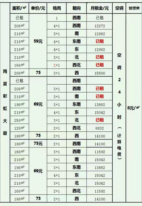 彩虹大廈 信息表