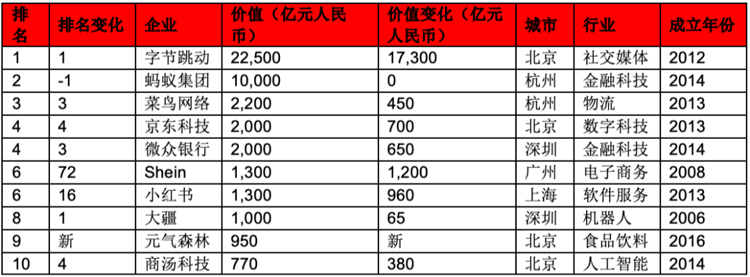 字節(jié)跳動(北京)、螞蟻集團(杭州)、菜鳥網(wǎng)絡(luò)(杭州)、京東科技(北京)、微眾銀行(深圳)、希音SHEIN(廣州)、小紅書(上海)、大疆(深圳)、元氣森林(北京)、商湯科技(北京)
