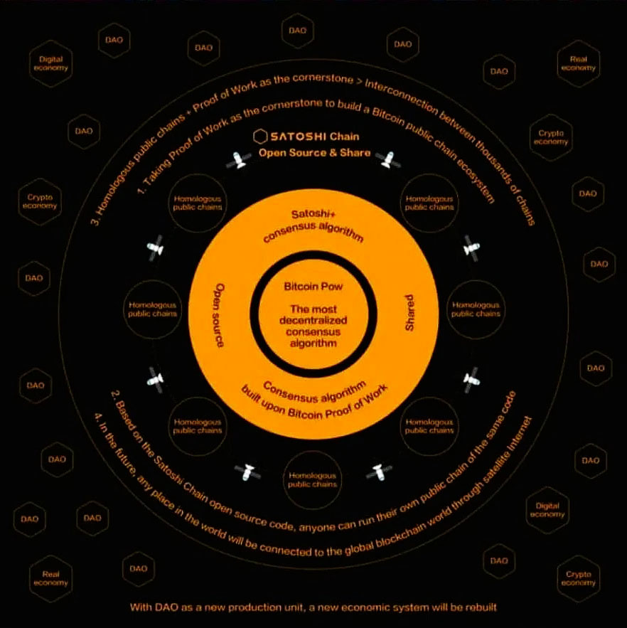 四、中本聰公鏈的基礎(chǔ)是通過SATOSH+共識算法連接比特幣的PoW共識算法,這樣世界只需要一組PoW就可以運行一切,中本聰將成為未來去中心化貨幣系統(tǒng)、金融工程和自治組織的最佳底層基礎(chǔ)設(shè)施。