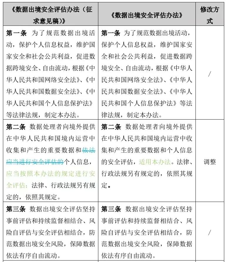 數(shù)據(jù)出境安全評(píng)估辦法(征求意見稿)數(shù)據(jù)出境安全評(píng)估辦法:修改方式:第一條到第三條