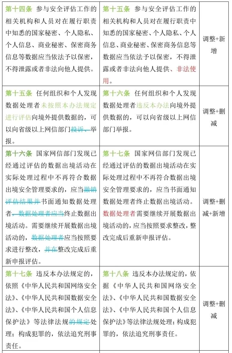 數(shù)據(jù)出境安全評(píng)估辦法(征求意見稿)數(shù)據(jù)出境安全評(píng)估辦法:修改方式:第十四條到十八條