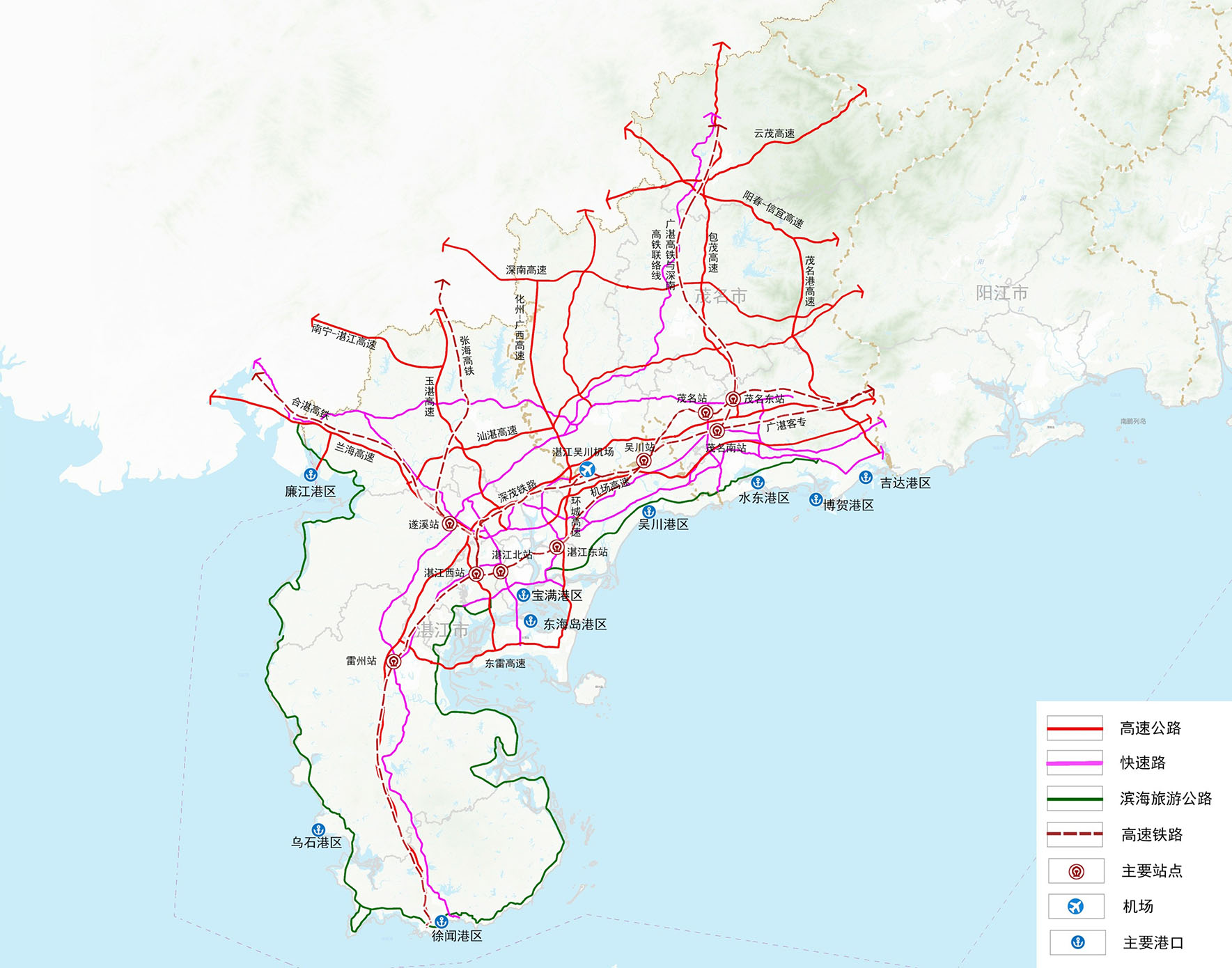 構(gòu)建內(nèi)聯(lián)外通的高快速路系統(tǒng)。加快推進(jìn)湛江至南寧、
