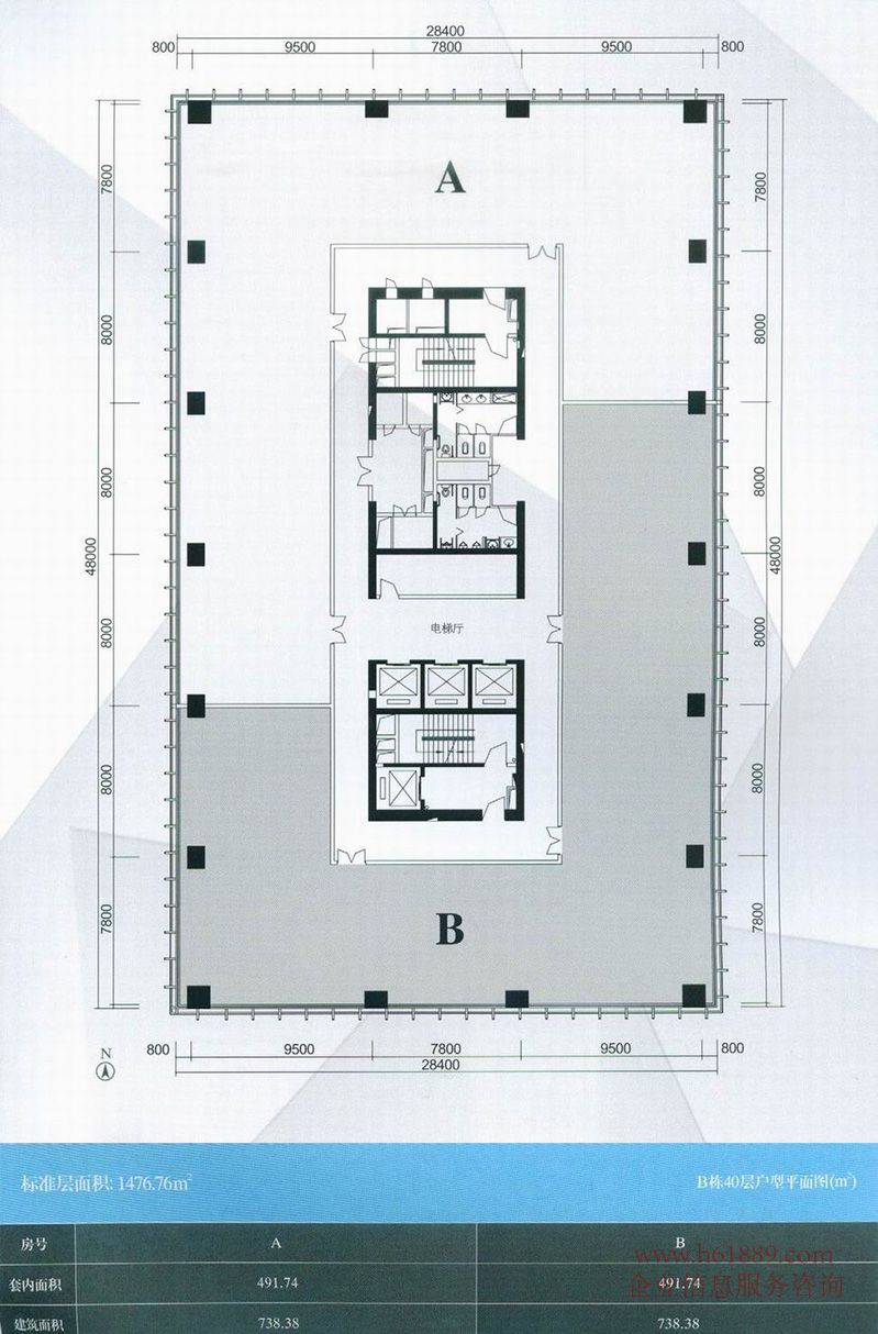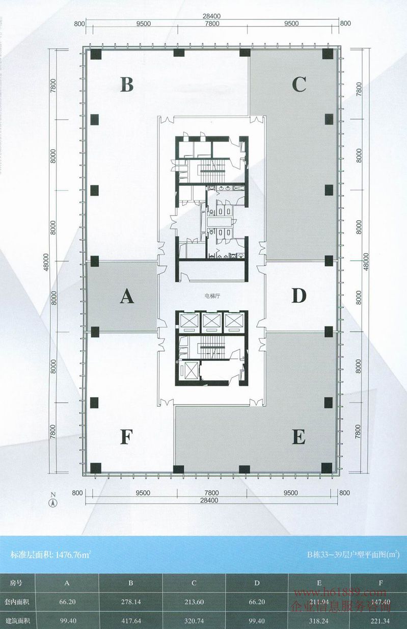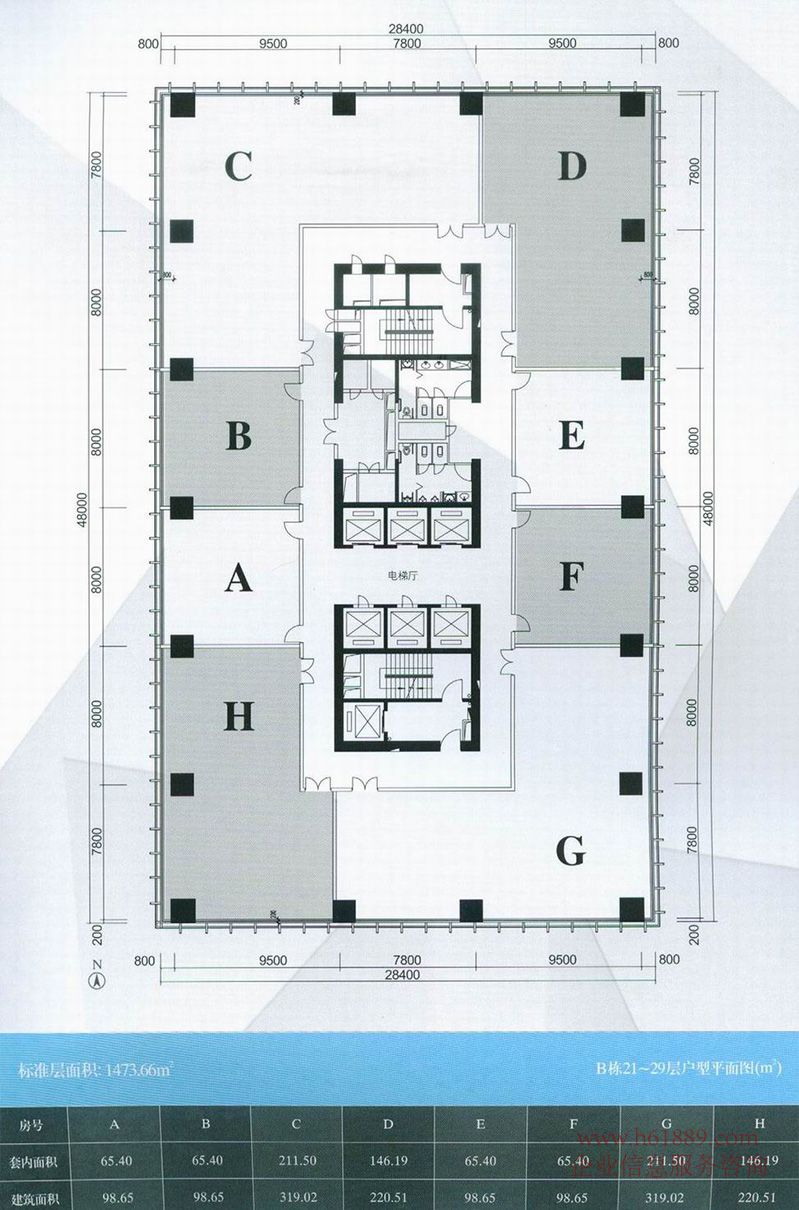 戶型面積:68平米、80平米、96平米、102平米、168平米、216平米、319平米、417平米、738平米、整層面積:1467.27-1470.14㎡、面積任意組合