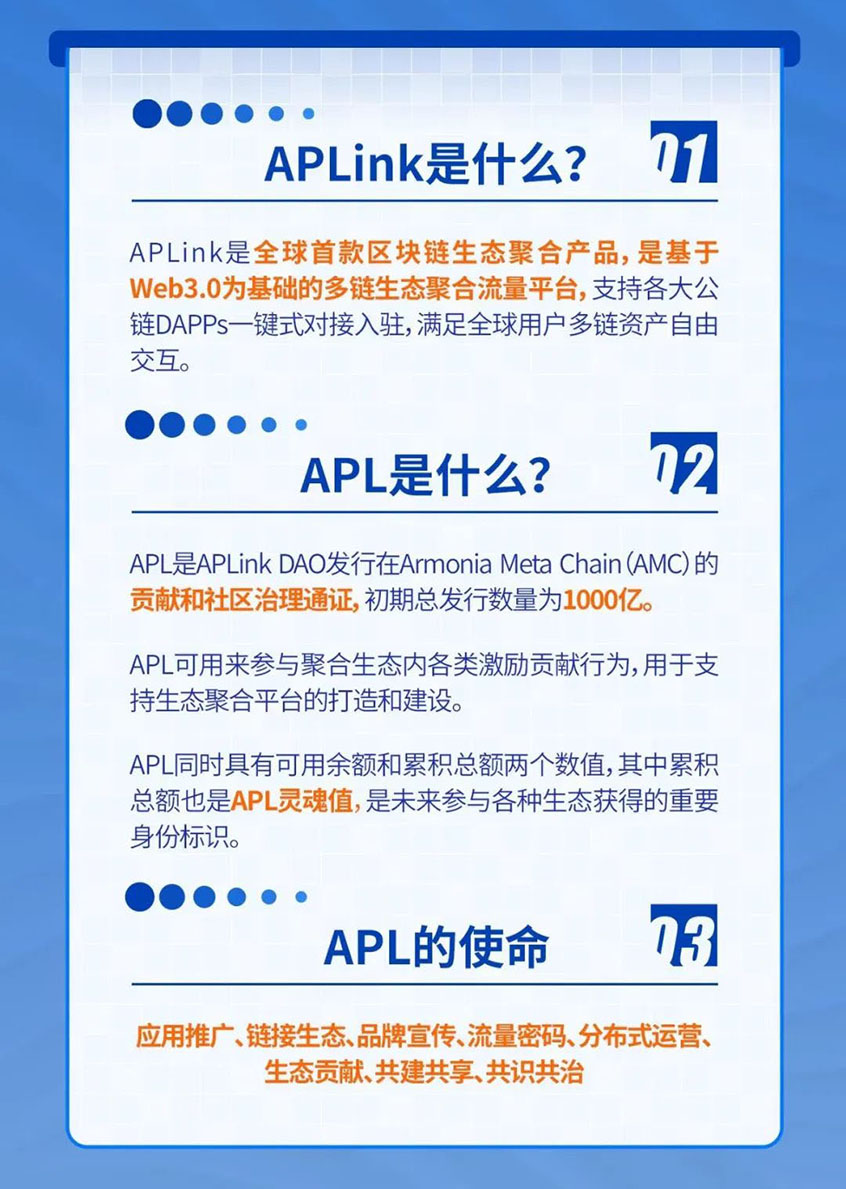 01:APLink、是全球首款區(qū)塊鏈生態(tài)聚合產(chǎn)品、是基于 Web3.0為基礎(chǔ)的多鏈生態(tài)聚合流量平臺(tái)、支持各大公鏈DAPPs一鍵式對(duì)接入駐、滿足全球用戶多鏈資產(chǎn)自由交互