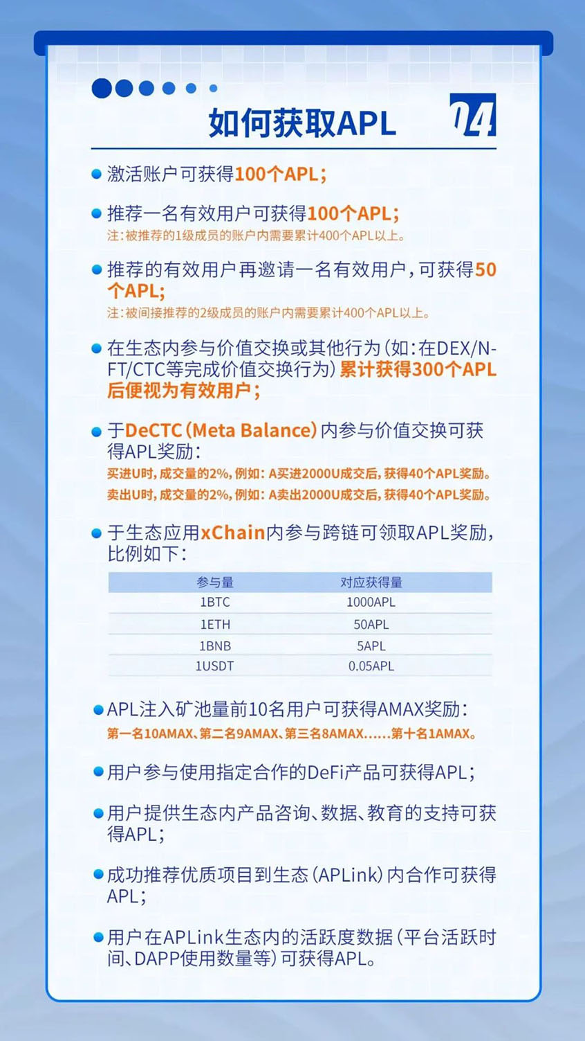 在生態(tài)內(nèi)參與價(jià)值交換或其他行為(如:在DEX/N- FT/CTC等完成價(jià)值交換行為)累計(jì)獲得300個(gè) APL 后便視為有效用戶