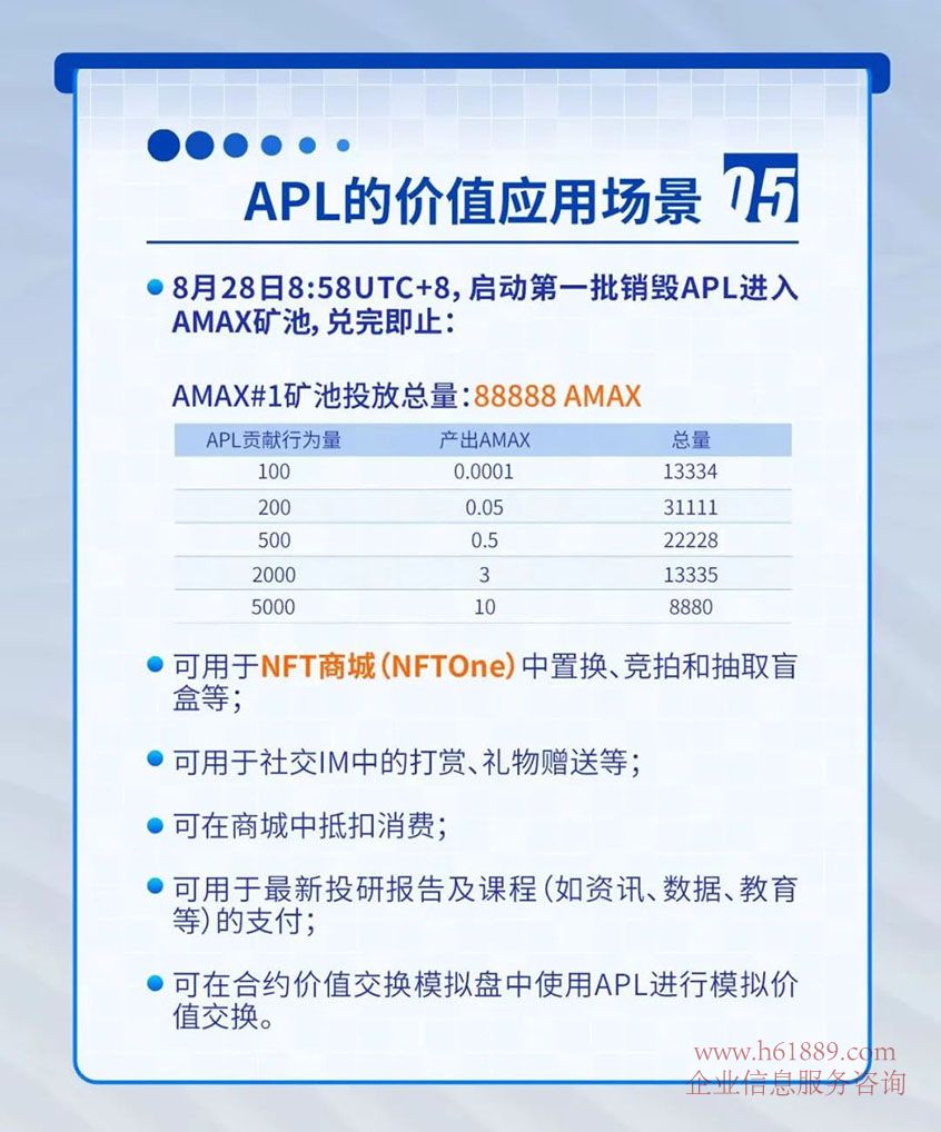 可用于NFT商城(NFTOne)中置換、競(jìng)拍和抽取盲盒等、可用于社交IM中的打賞、禮物贈(zèng)送等、可在商城中抵扣消費(fèi)、可用于最新投研報(bào)告及課程(如資訊、數(shù)據(jù)、教育等)的支付、可在合約價(jià)值交換模擬盤(pán)中使用APL進(jìn)行模擬價(jià)值交換