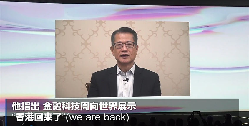 香港特區(qū)政府財政司司長陳茂波以視頻形式在開幕禮致辭。他指出,金融科技周向世界展示“香港回來了”(we are back)。陳茂波表示,香港5年前只有不到180家金融科技公司,現(xiàn)在增加到800家,其中很多是由海外人才發(fā)起。他強(qiáng)調(diào)香港的開放市場、資金自由流動、法治均是優(yōu)勢,“一國兩制”也幫助香港與內(nèi)地及世界各地連接