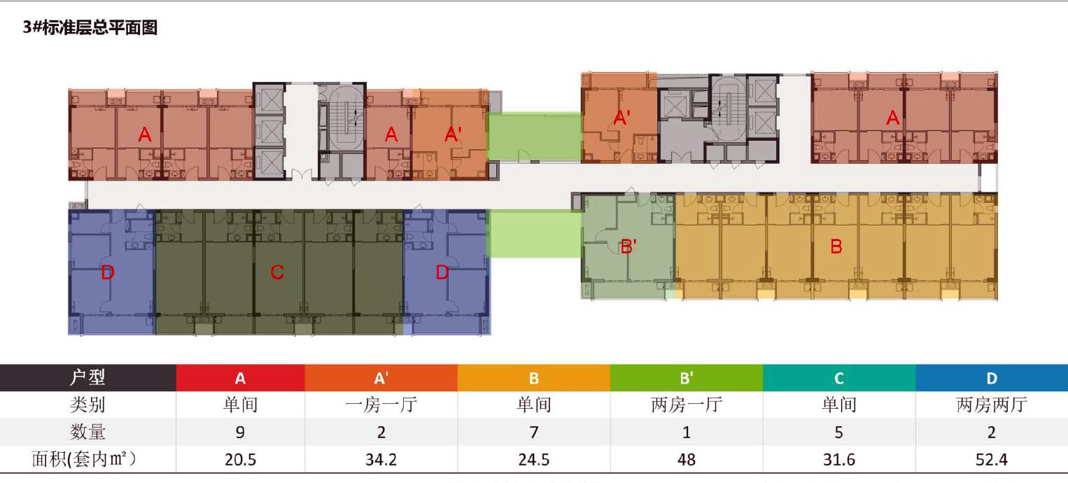3:產(chǎn)品主要有單間、一房一廳及兩房兩廳三種戶型,套內(nèi)面積在20.5—52.4㎡區(qū)間,建筑面積在33.40—85.06㎡區(qū)間、戶型開間為3.6~3.9m