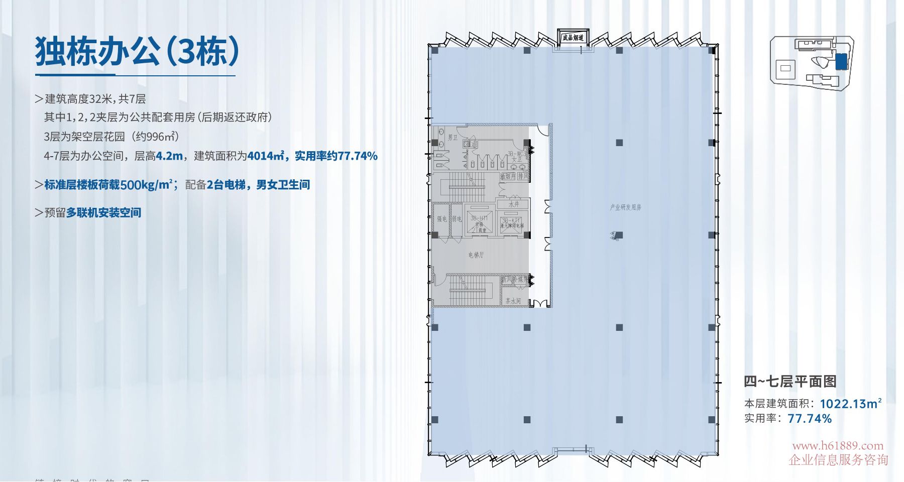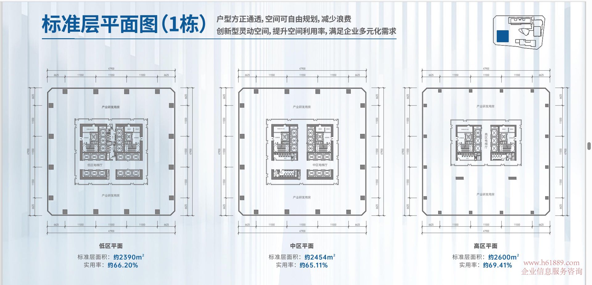 項目2棟及3棟設(shè)計為辦公獨棟,一企一棟,獨享不凡。每棟配置有1臺貨梯、1臺客梯,尊享從容企業(yè)效率。滿足企業(yè)大型設(shè)備布置需求,助力企業(yè)實現(xiàn)辦公、研發(fā)、生產(chǎn)一體化。2、3棟一層承重850kg/平,二層承重650kg/平,標(biāo)準層承重500kg/平