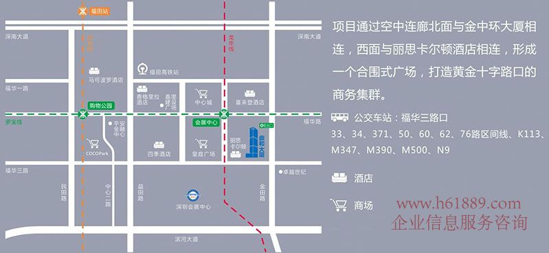 物業(yè)交通情況:地鐵:會(huì)展中心站:地鐵1號(hào)線(羅寶線) 地鐵4號(hào)線(龍華線)