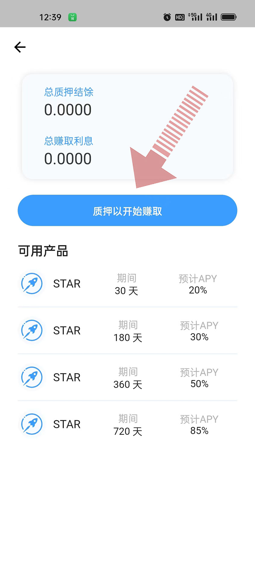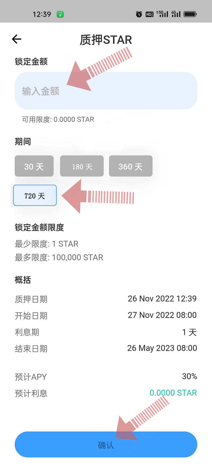 質(zhì)押30天、180天、360天、720天賺取75億星利息