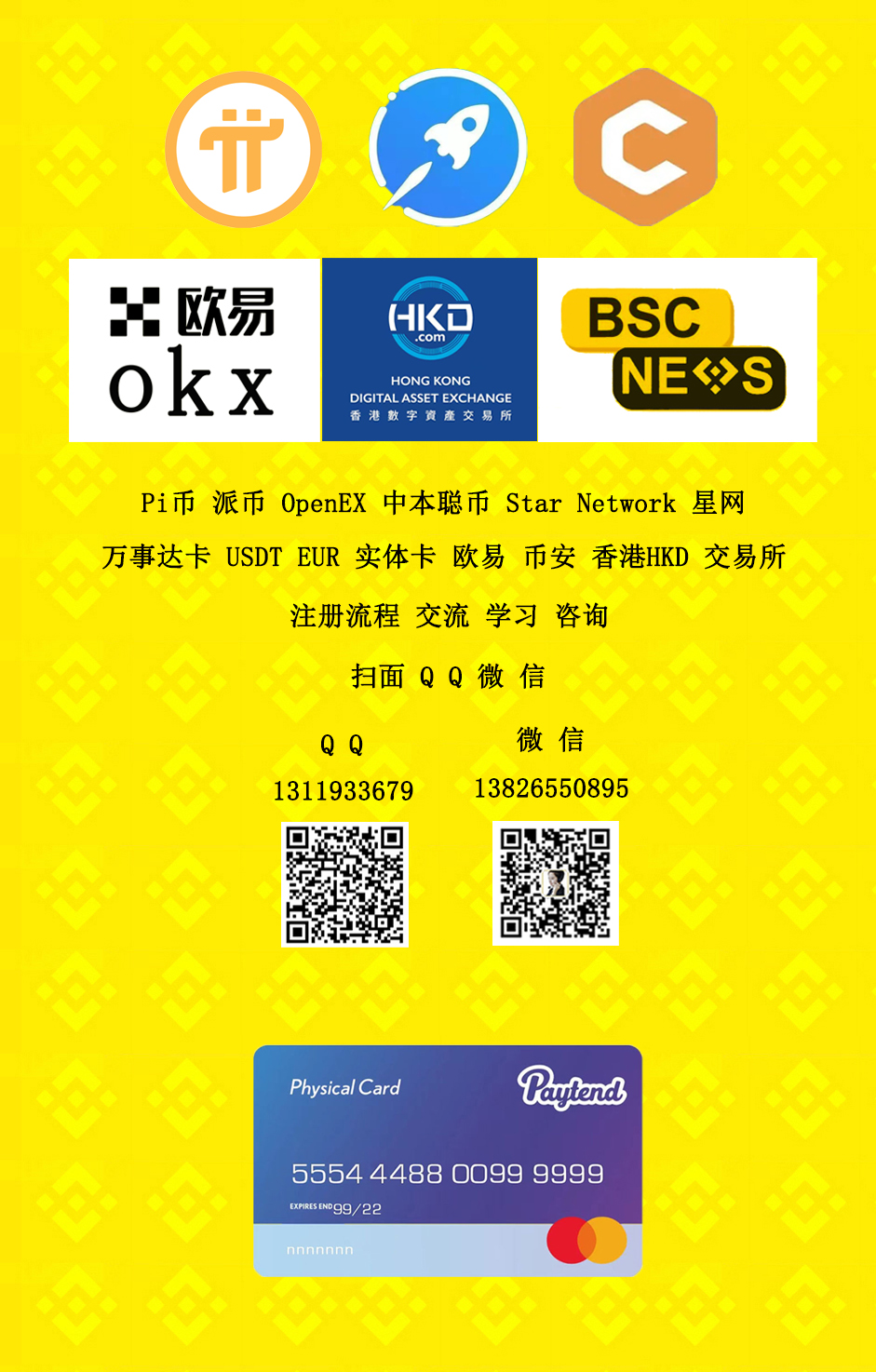萬(wàn)事達(dá)卡 USDT EUR 實(shí)體卡 歐易 幣安 香港HKD 交易所