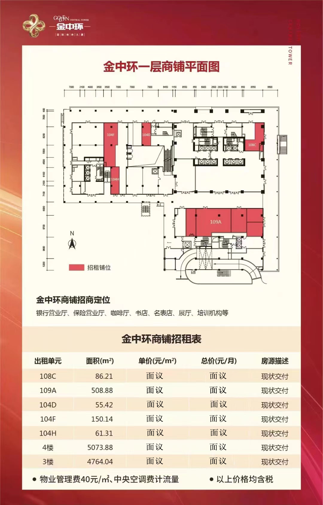 金中環(huán)商務大廈(金中環(huán)國際商務大廈)商鋪裙樓、醫(yī)療美容、休閑會所、展廳、培訓機構、出租