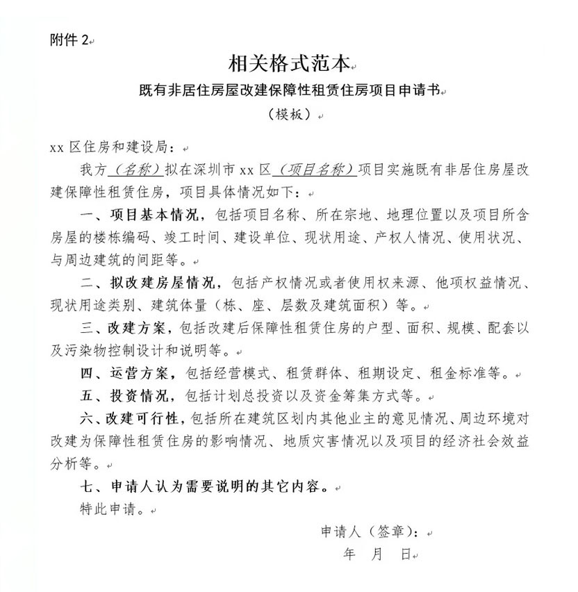 既有非居住房屋改建保障性租賃住房項目申請書