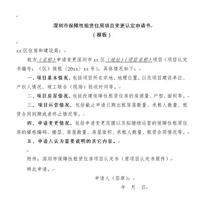 深圳市保障性租賃住房項目變更認定申請書