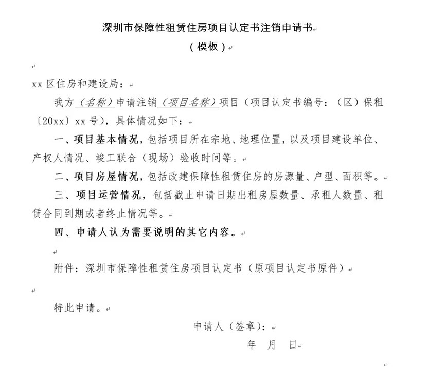 深圳市保障性租賃住房項目認定書注銷申請書