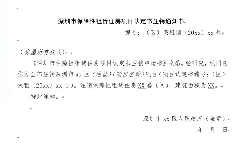 深圳市保障性租賃住房項目認定書注銷通知書