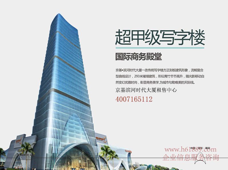 京基濱河時(shí)代大廈租售中心電話:400 7165 112