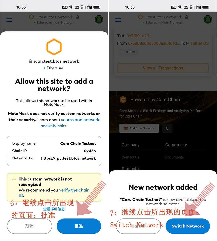 7:繼續(xù)點擊所出現(xiàn)的頁面:Switch Network 添加CORE“酷爾幣”主網(wǎng)絡(luò)