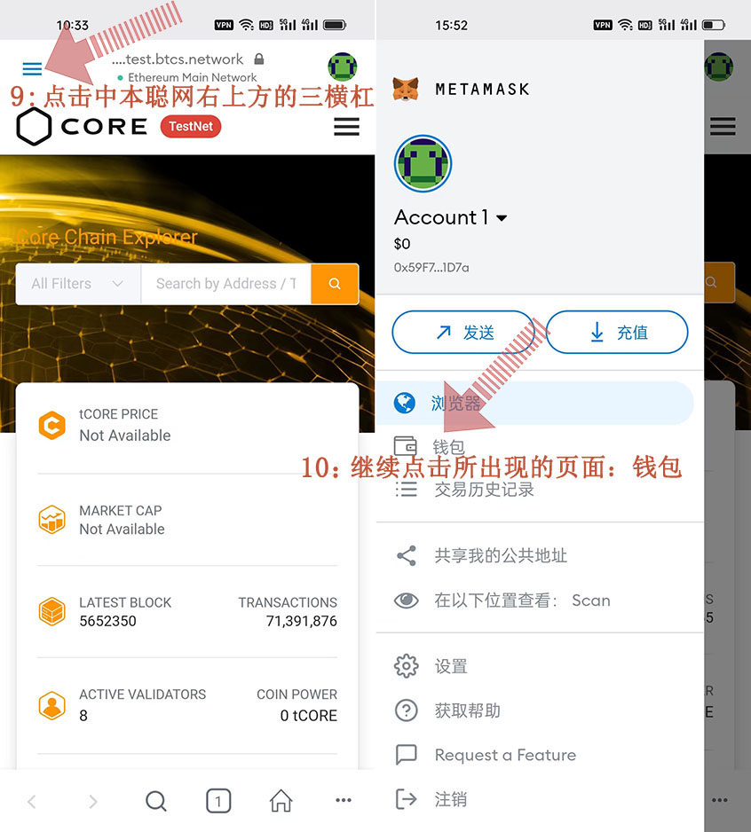 方法一:測試網(wǎng) CORE“酷爾幣”Metamask(小狐貍錢/包)合約代幣全套資料