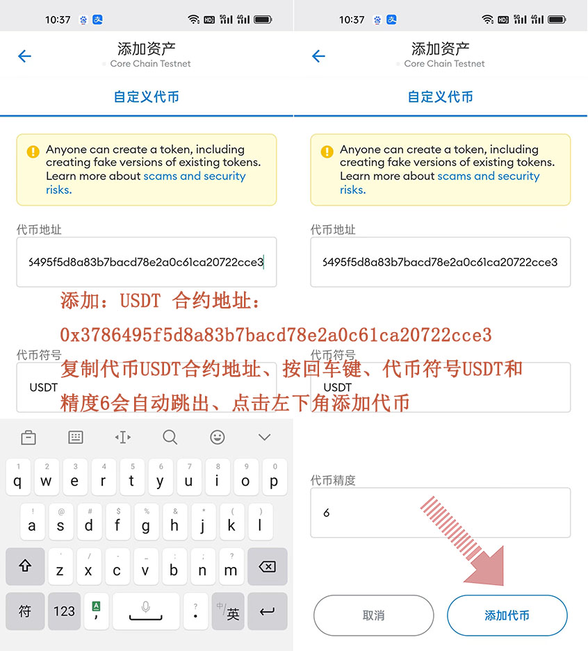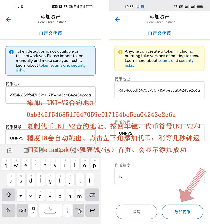 方法二:CORE“酷爾幣”Metamask(小狐貍錢/包)合約代幣全套資料