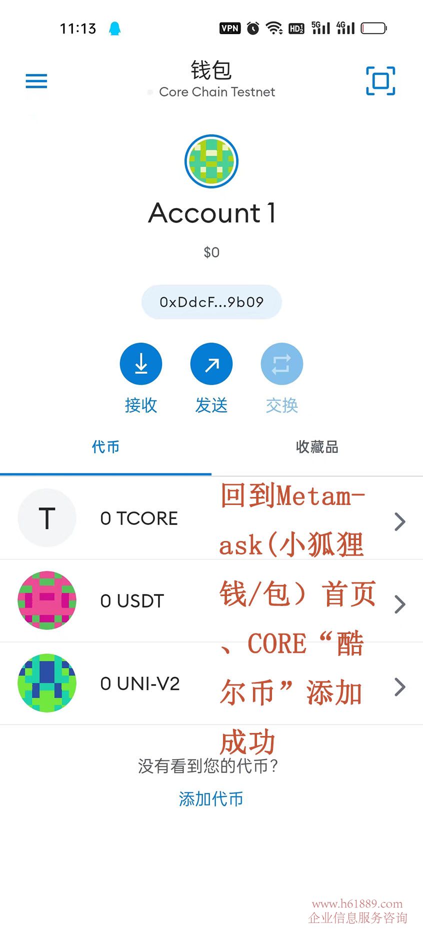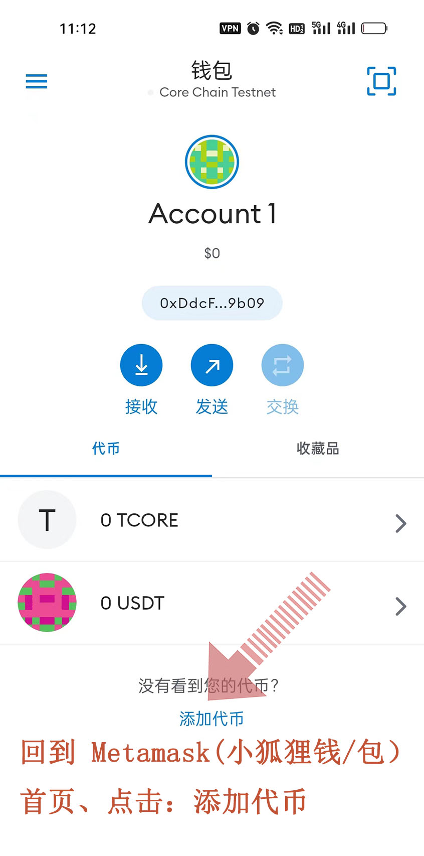 回到 Metamask(小狐貍錢/包)首頁、CORE“酷爾幣”添加成功