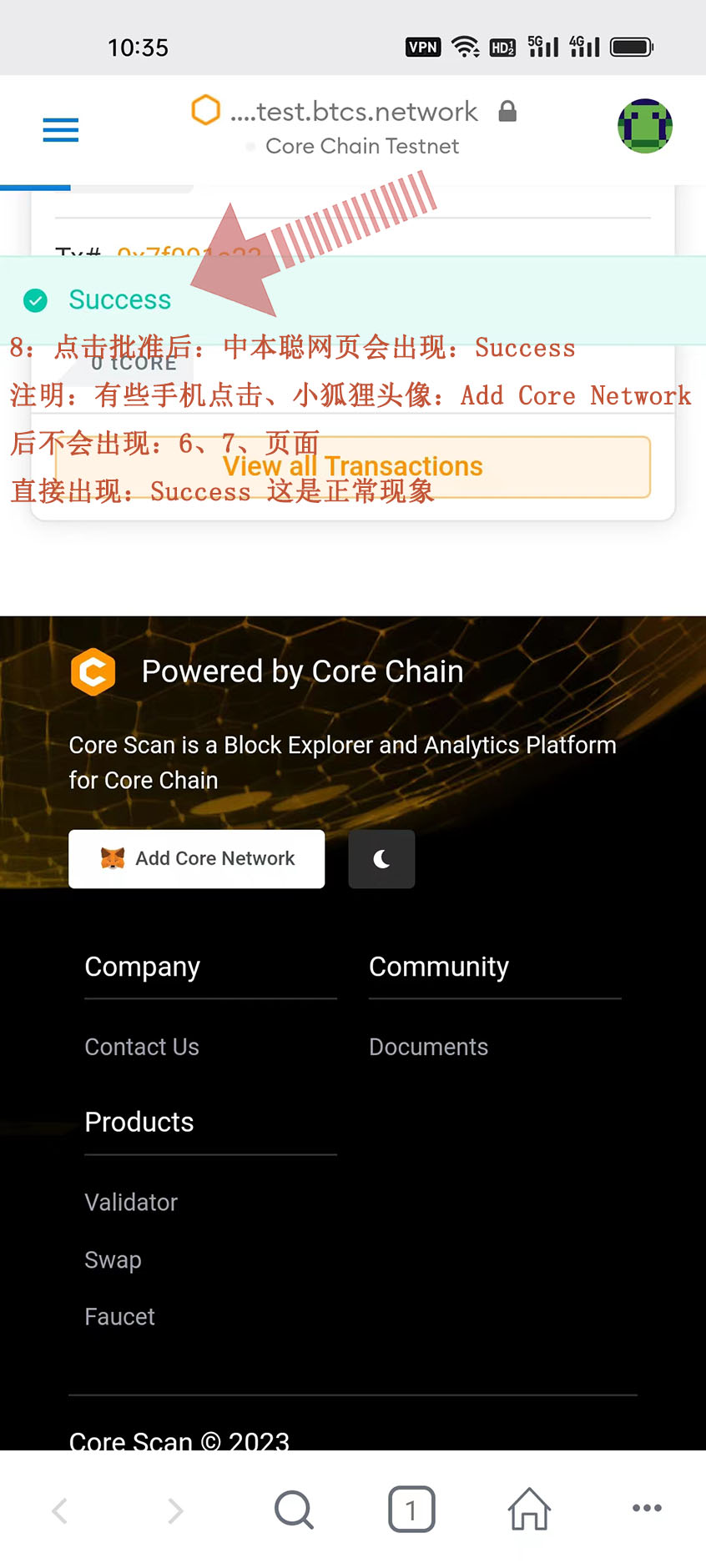 8:點擊批準(zhǔn)后:中本聰網(wǎng)網(wǎng)頁回出現(xiàn):Success