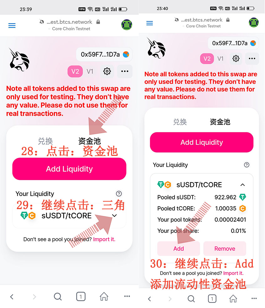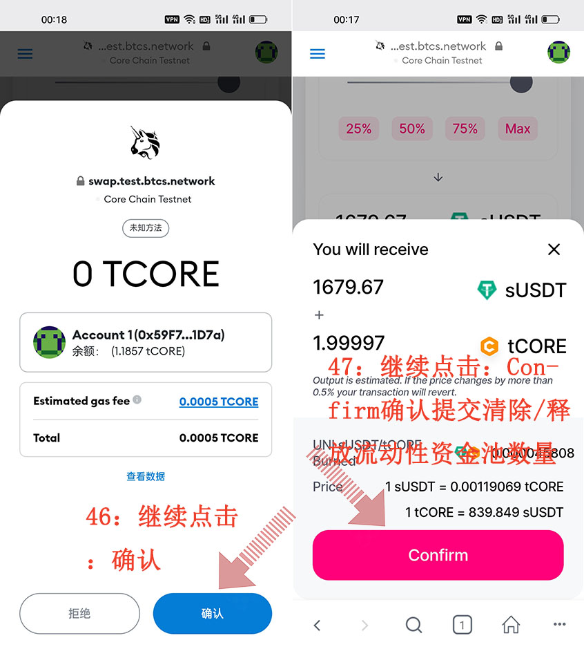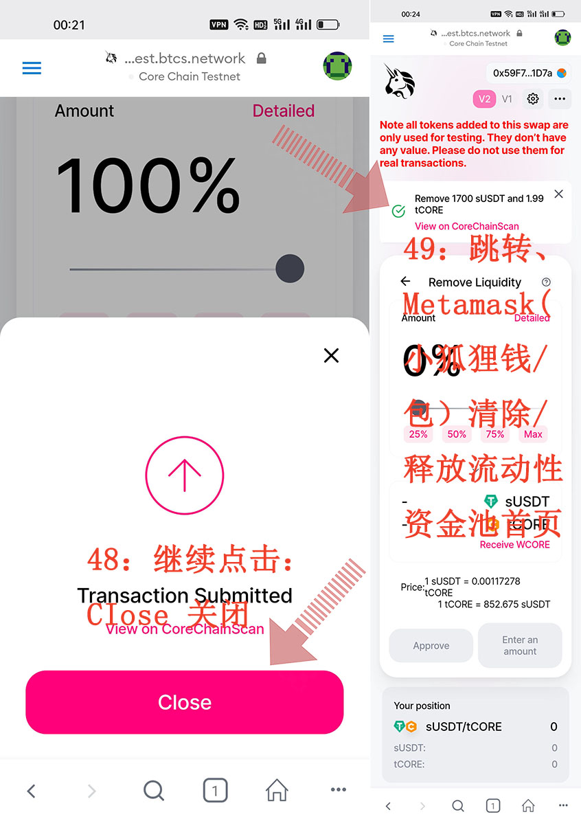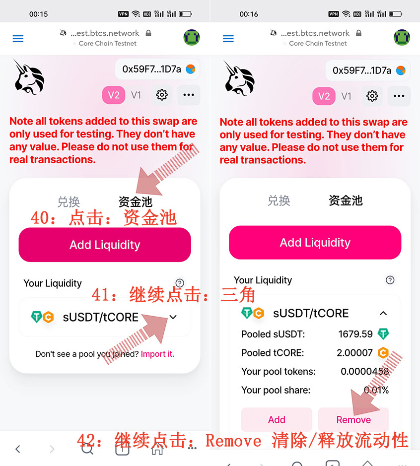 這就是CORE“酷爾幣”Metamask(小狐貍錢/包)怎么添加清除/釋放流動性資金池的具體整個操作流程