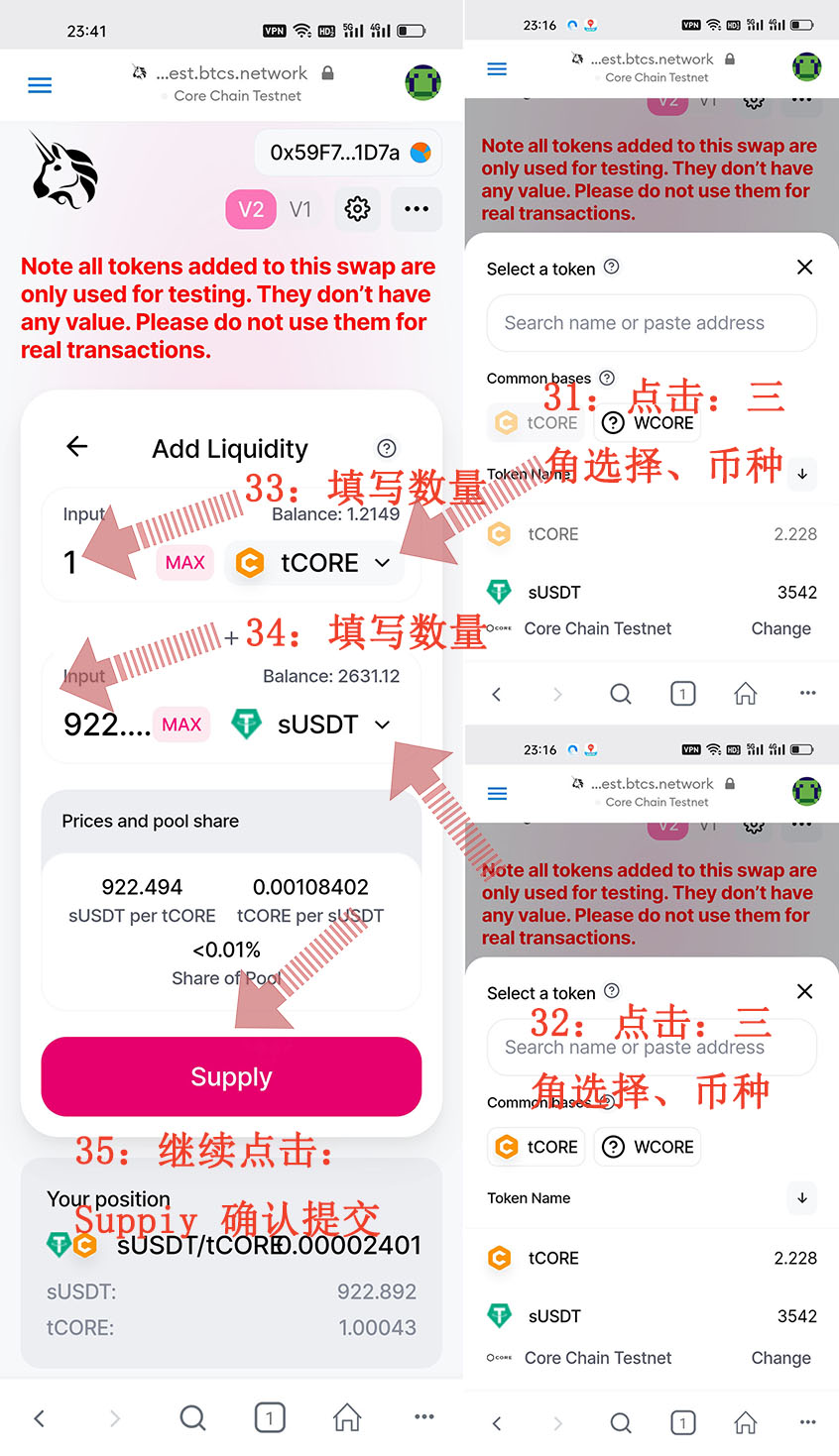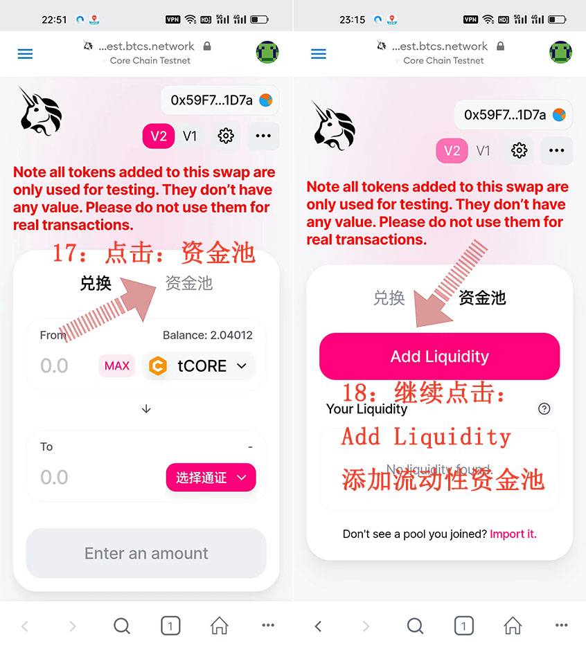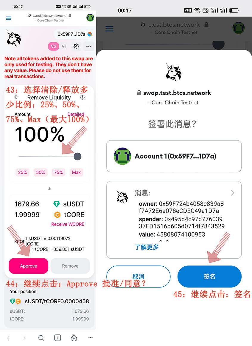 這就是CORE“酷爾幣”Metamask(小狐貍錢/包)怎么添加清除/釋放流動性資金池的具體整個操作流程
