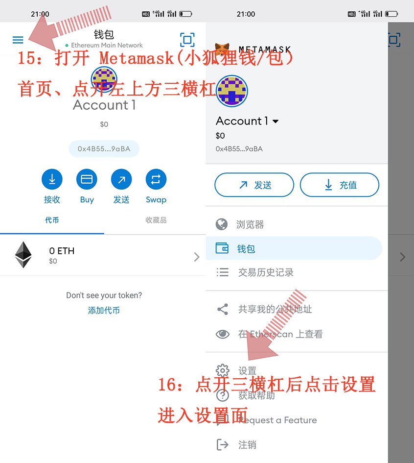 15:打開 Metamask(小狐貍錢/包)首頁、點開左上方三橫杠