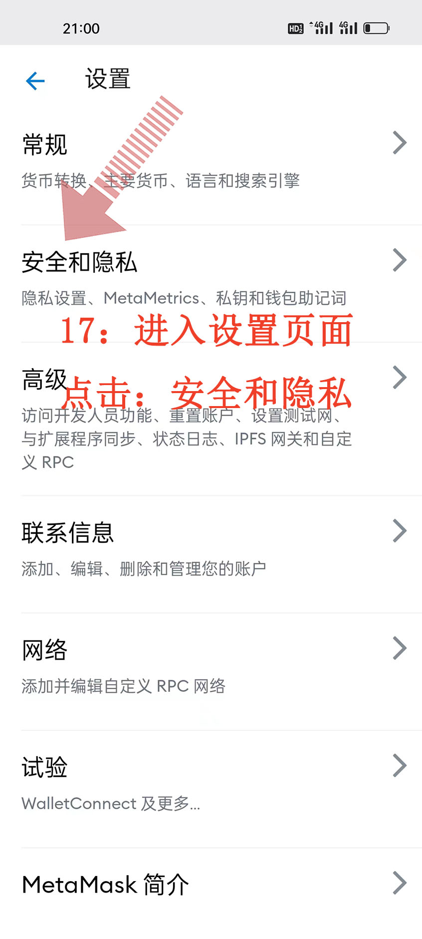 17:進(jìn)入設(shè)置頁面、點擊:安全和隱私