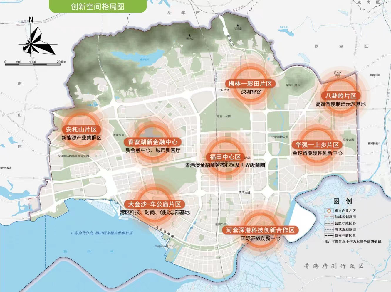 ● 以“三大新引擎”為牽引升級打造“八大片區(qū)”,河套深港科技創(chuàng)新合作區(qū)、香蜜湖新金融中心、福田中心區(qū)、華強(qiáng)—上步片區(qū)、梅林—彩田片區(qū)、大金沙—車公廟片區(qū)、八卦嶺片區(qū)、安托山片區(qū)