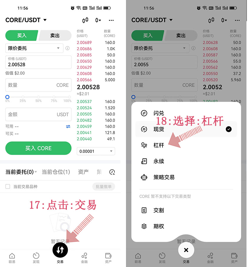 杠桿和現(xiàn)貨基本操作一樣步驟、杠桿多加了