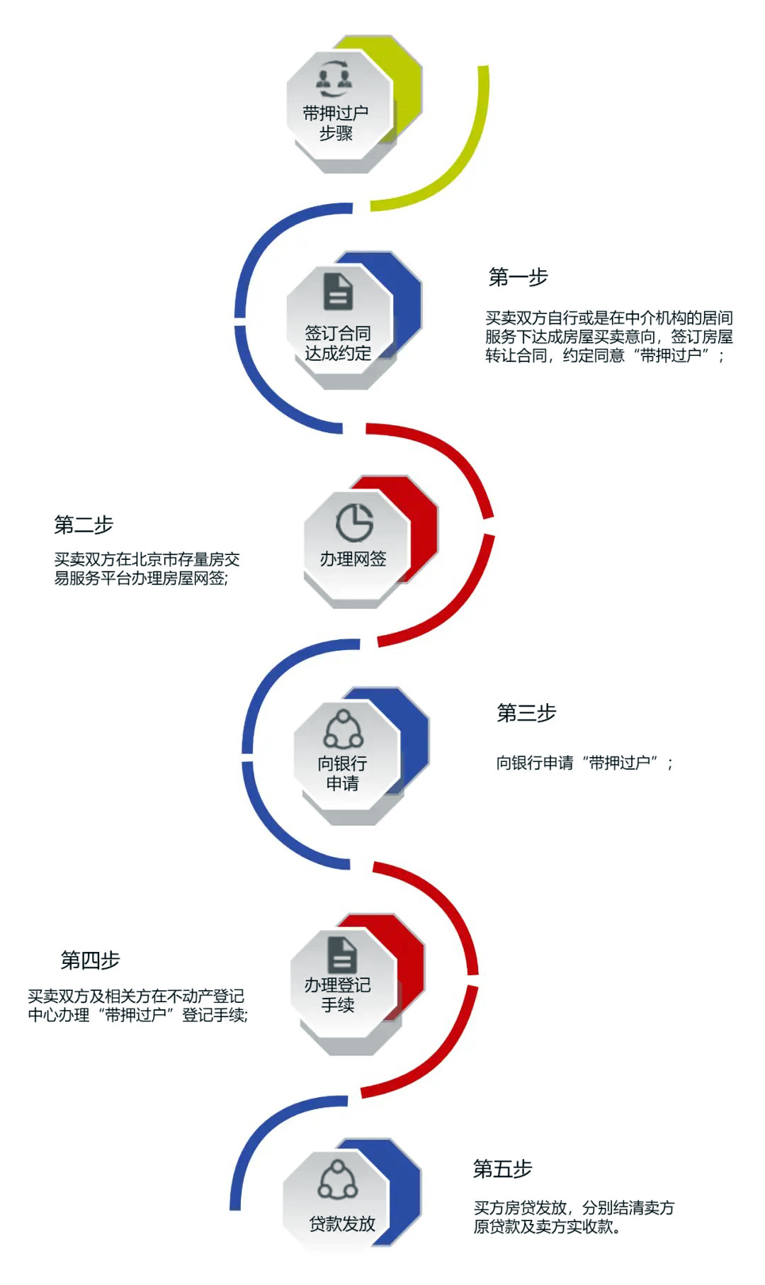 即日起,北京市個(gè)人二手房交易中,買賣雙方可以自愿選擇使用“帶押過戶”服務(wù),經(jīng)原貸款銀行同意,交易時(shí)不必先結(jié)清前一筆貸款,可通過“帶押過戶”模式,辦理房屋過戶和抵押登記,由新貸款銀行直接向賣方和原貸款銀行支付資金