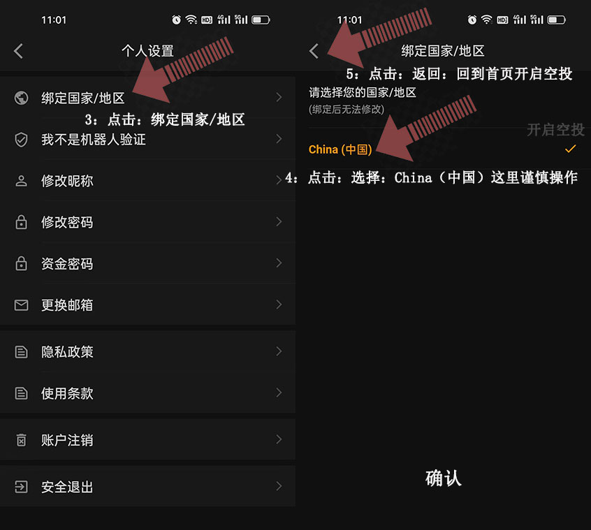 4:點擊:選擇:China(中國)繼續(xù) 點擊確認 按鈕 這里謹慎操作