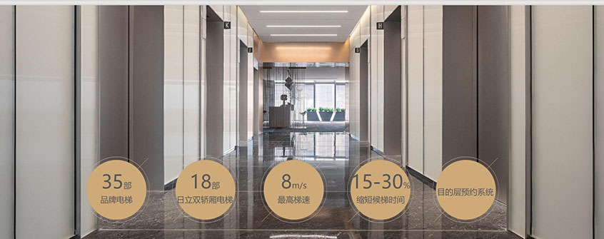 電梯:35部日立電梯【18部雙轎廂辦公客梯、最高梯速8m/s】