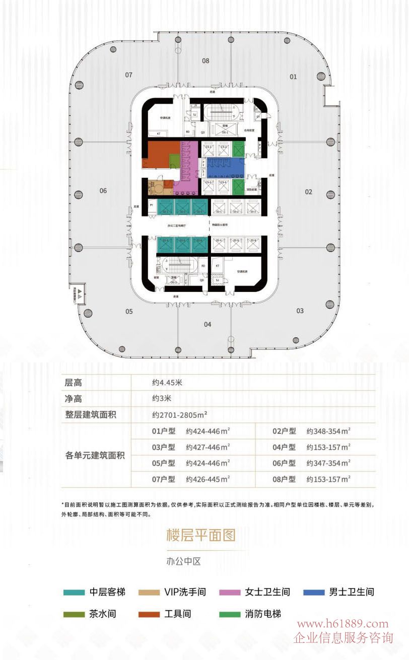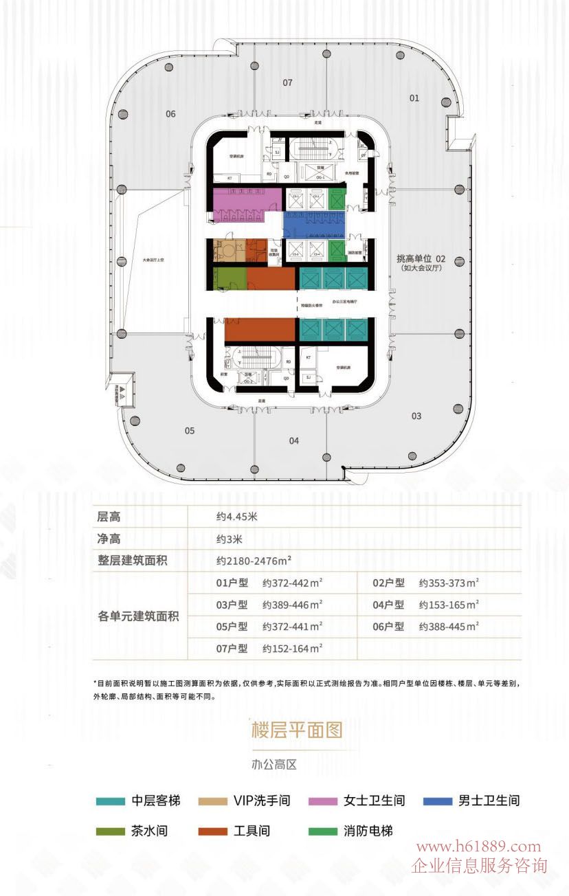 標準層:約2200-2800m、4.45m層高、辦公中區(qū)(25-39F)