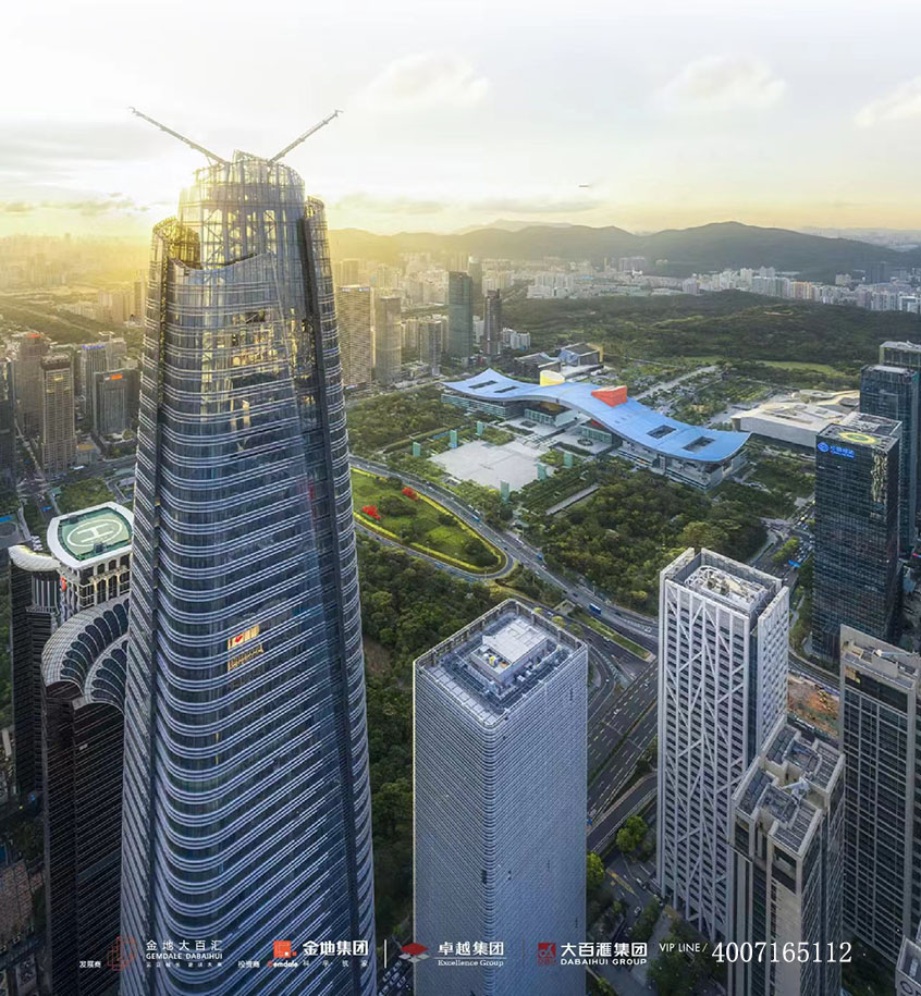 私募證券大廈【大百匯廣場】:380米云端視野、園山湖海四重景觀近瞰蓮花山、市民廣場等城市綠色配套遠眺梧桐山、深圳灣等深圳東西全景享受“一覽眾山小”的辦公新視野