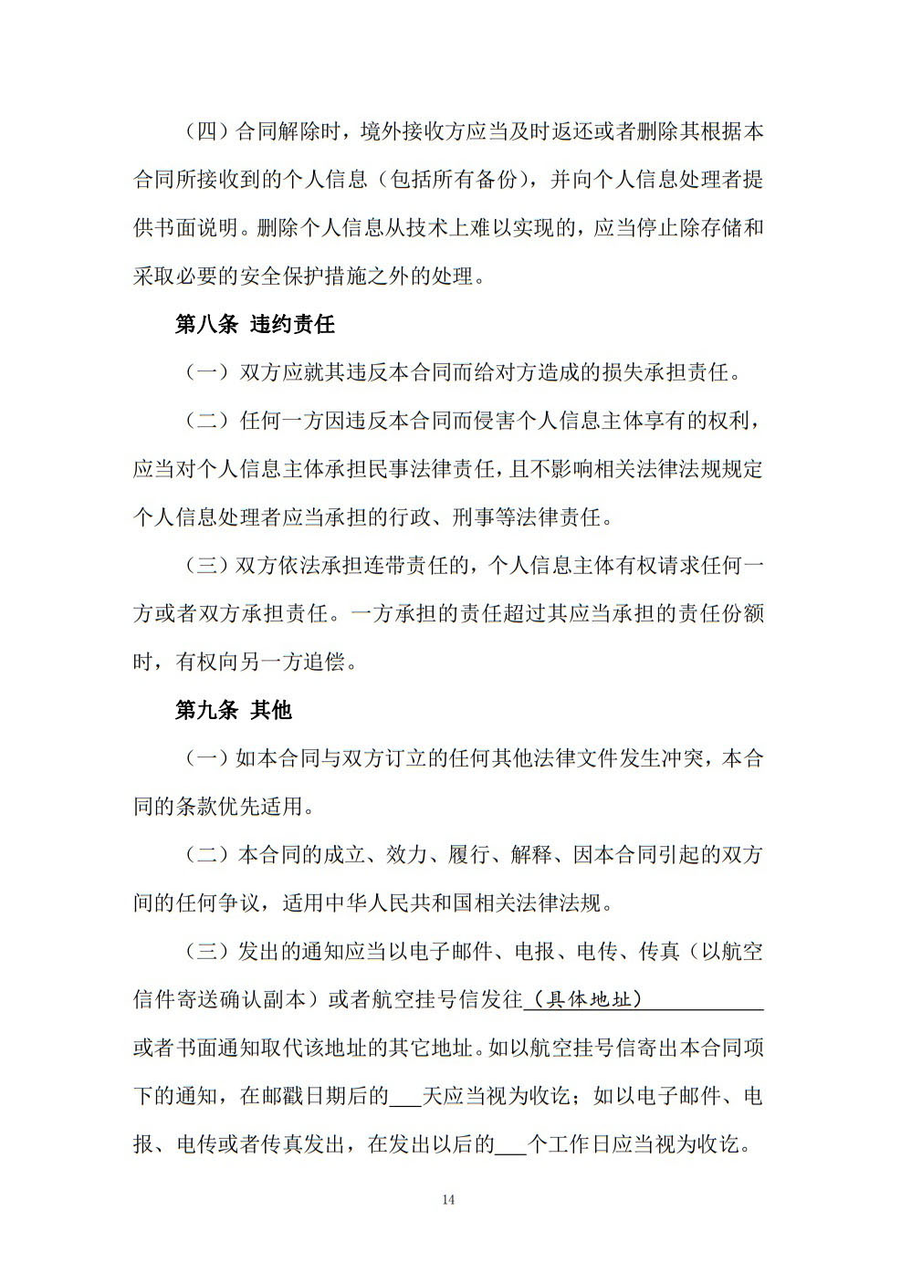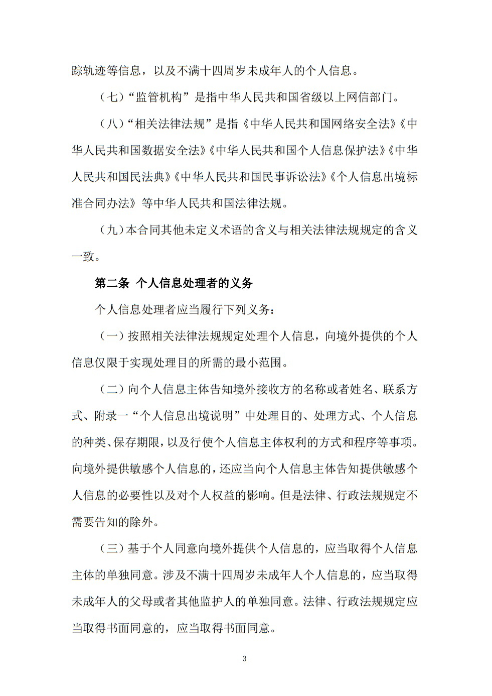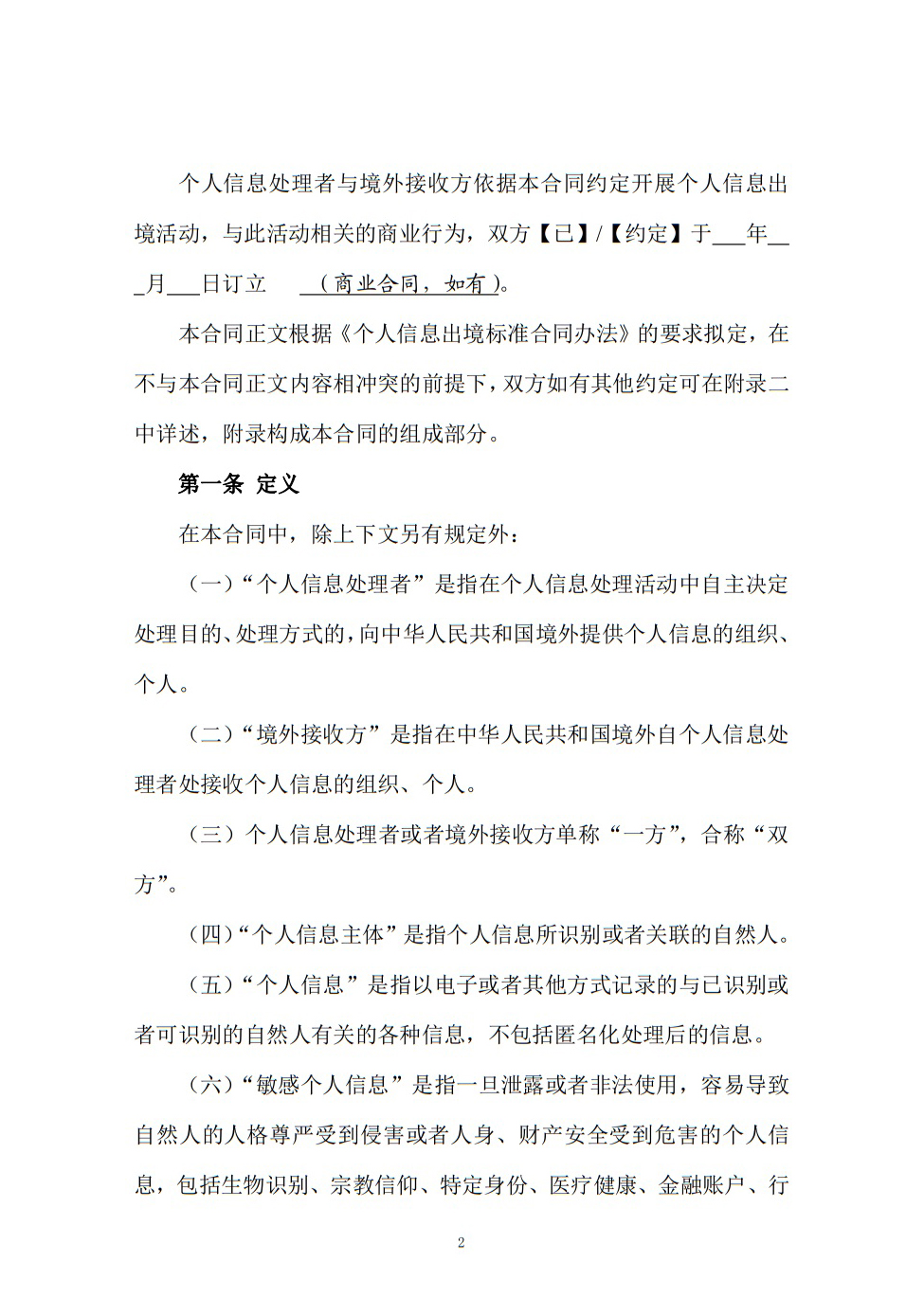 個(gè)人信息出境標(biāo)準(zhǔn)合同辦法